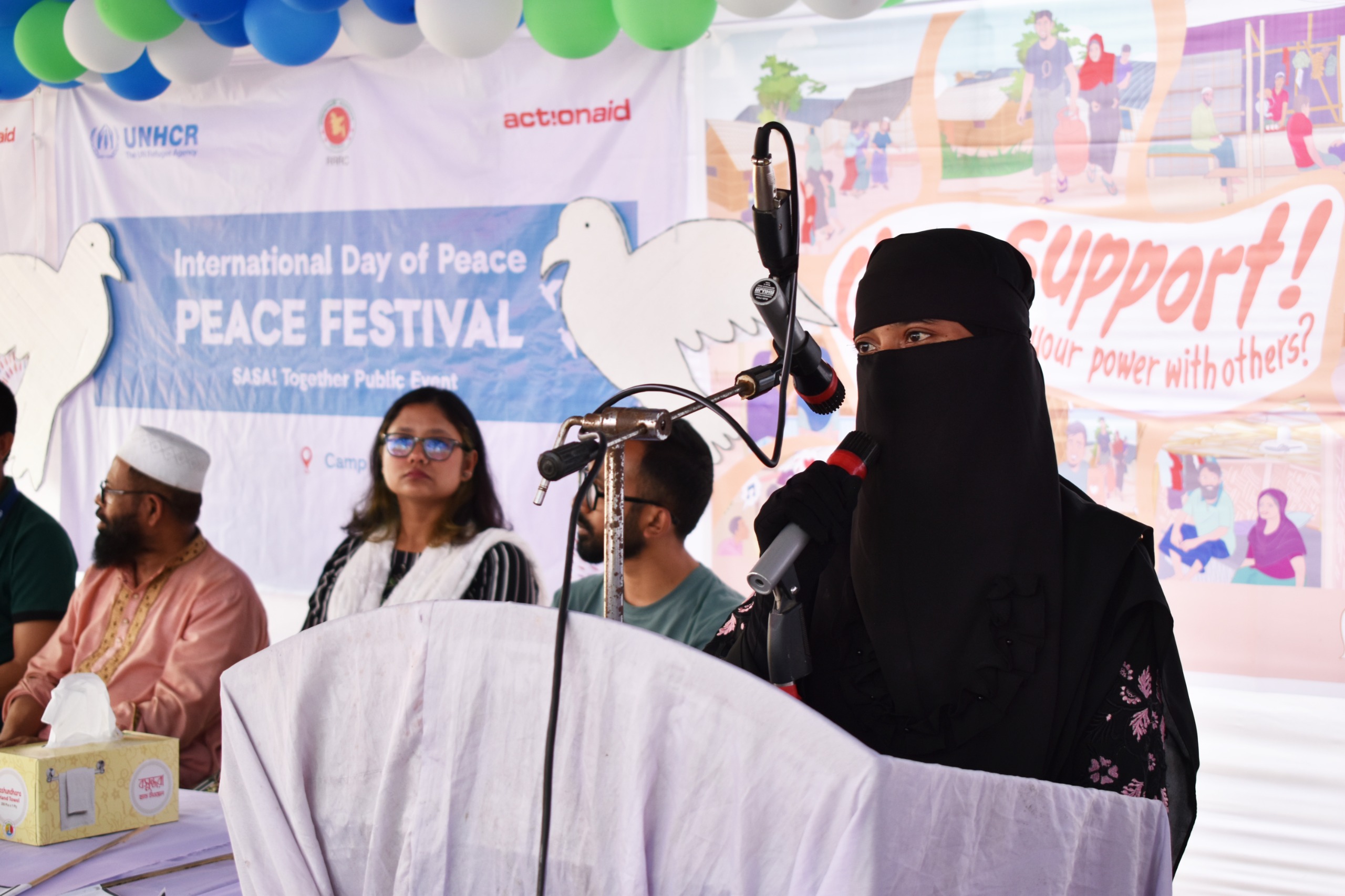 To mark the International Day of Peace, ActionAid Bangladesh’s Gender-based Violence Project, with support from UNHCR Bangladesh, organised a Peace Festival at Rohingya Refugee Camp 26 on 21 September 2025. Under the theme “Act Now for a Peaceful World”, the festival called on every member of the community to take immediate, collective action to promote peace and to prevent gender-based violence.